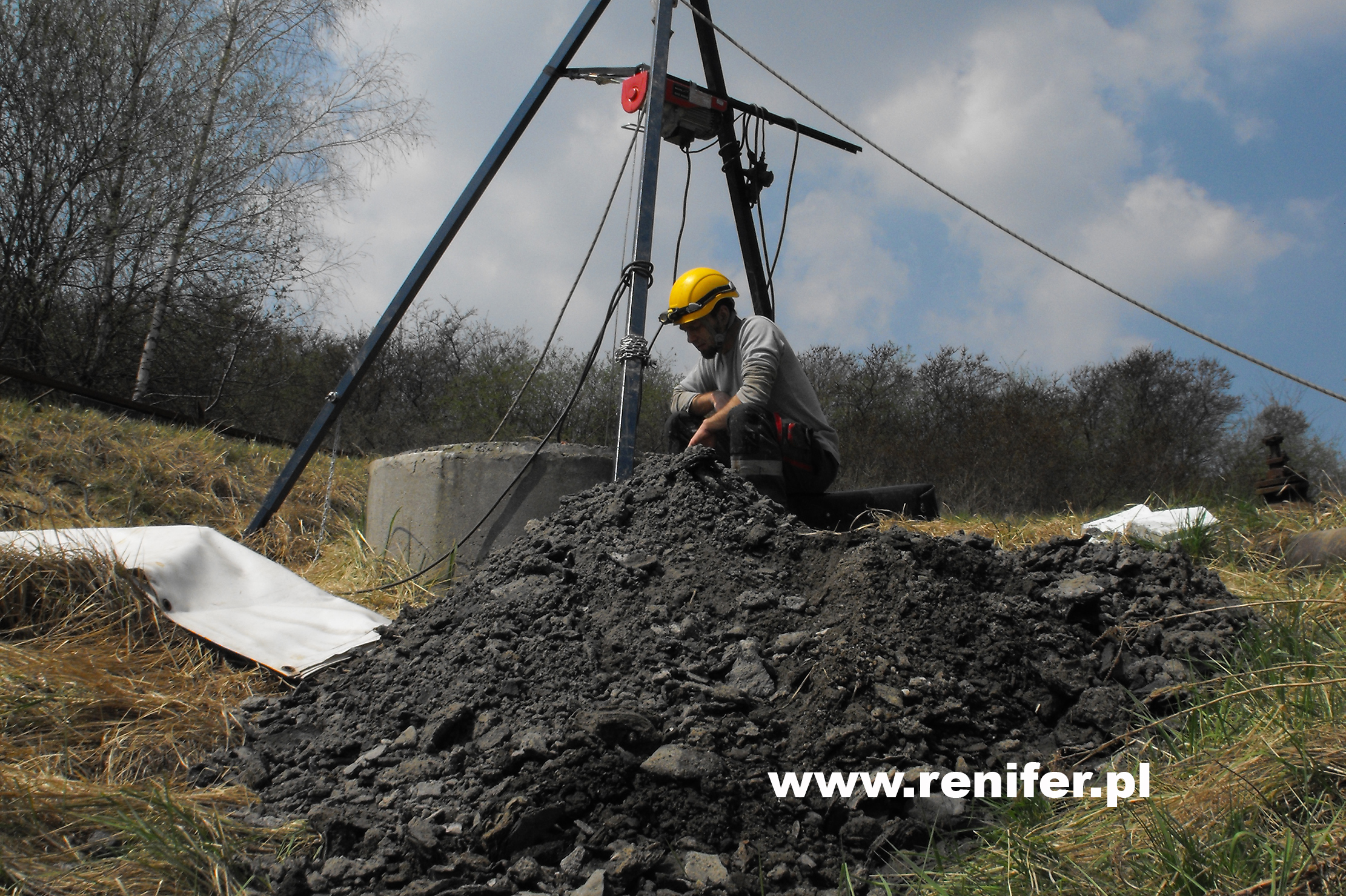 Studnia rewizyjna i wyciągnięty z niej urobek