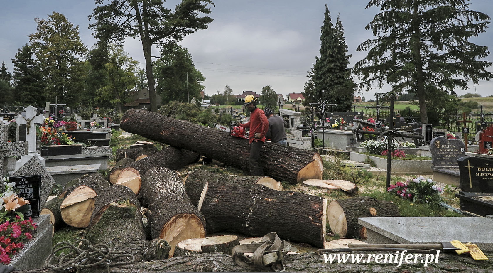 Wycinka sekcyjna na cmentarzu.